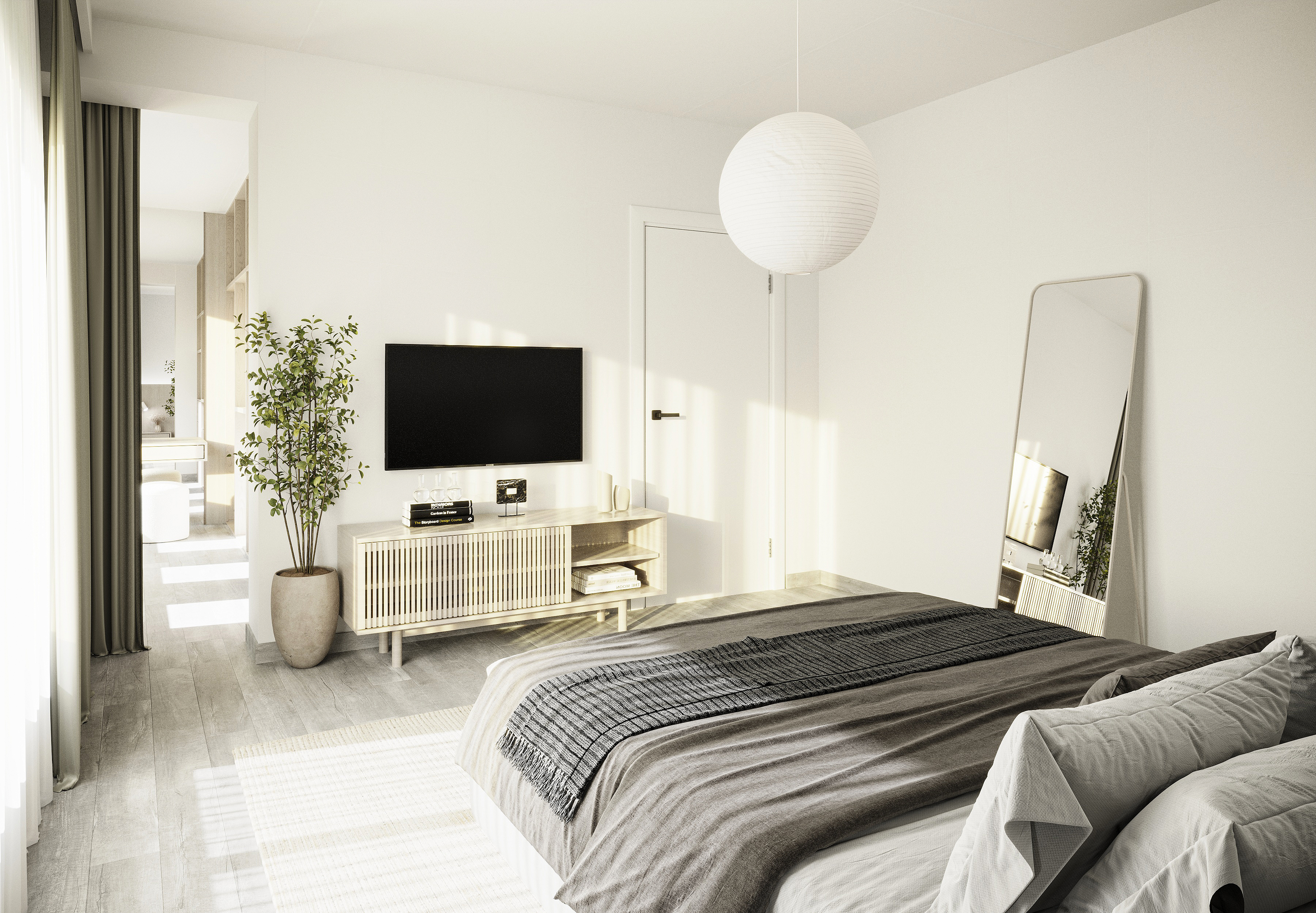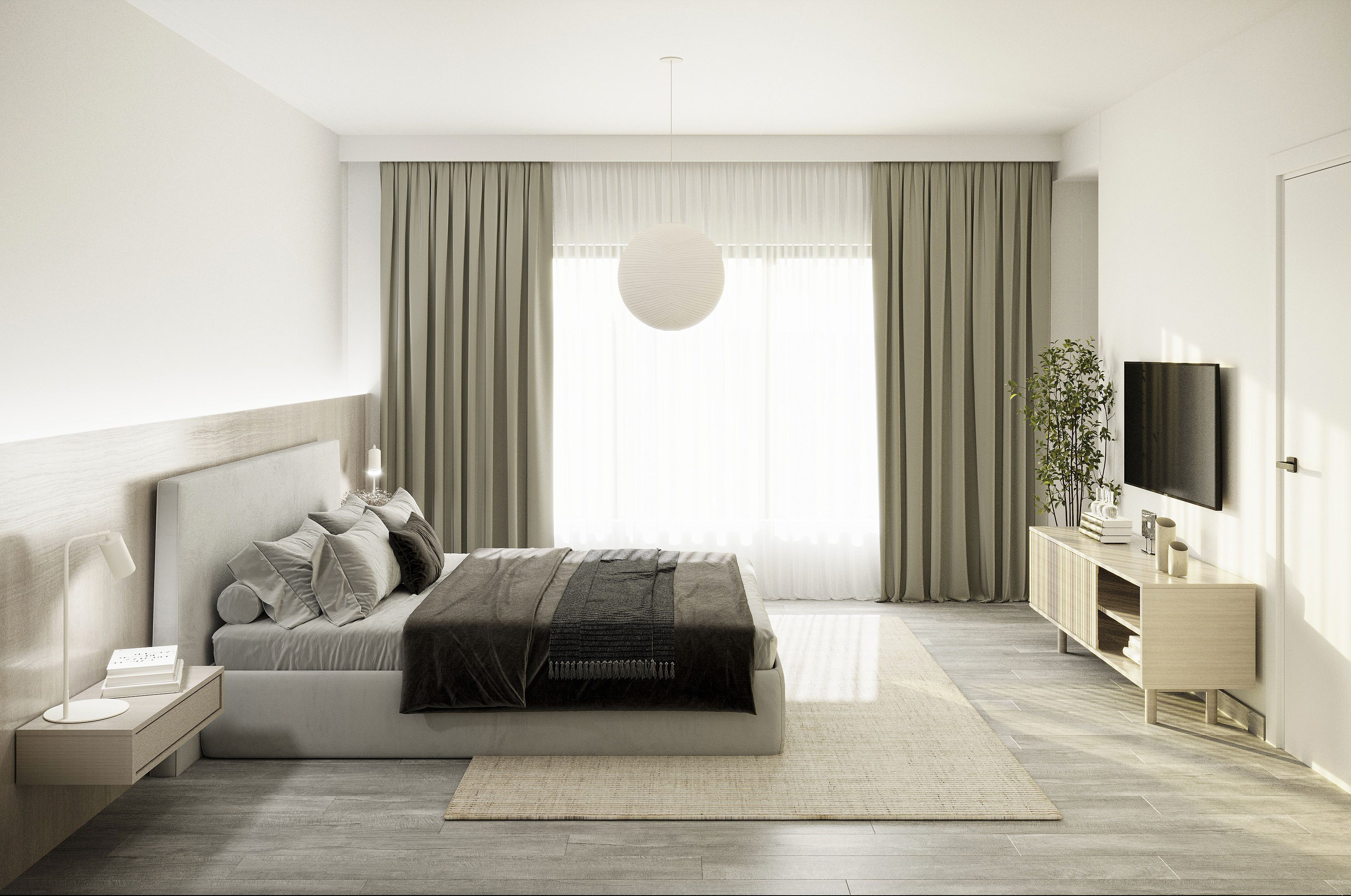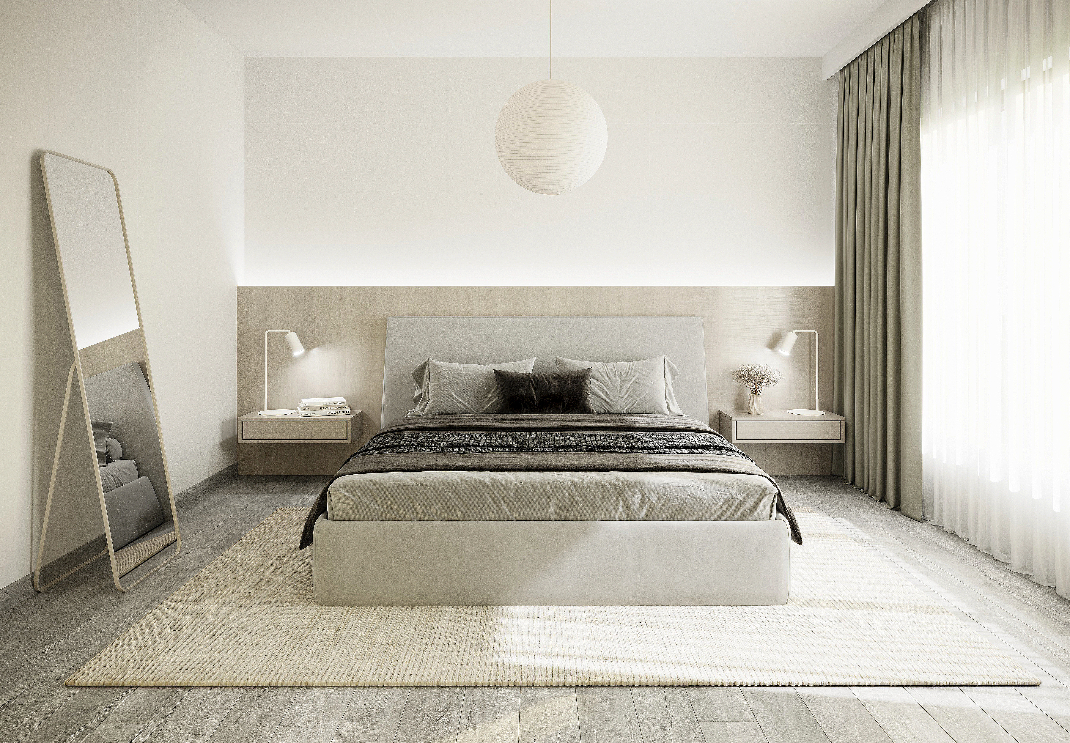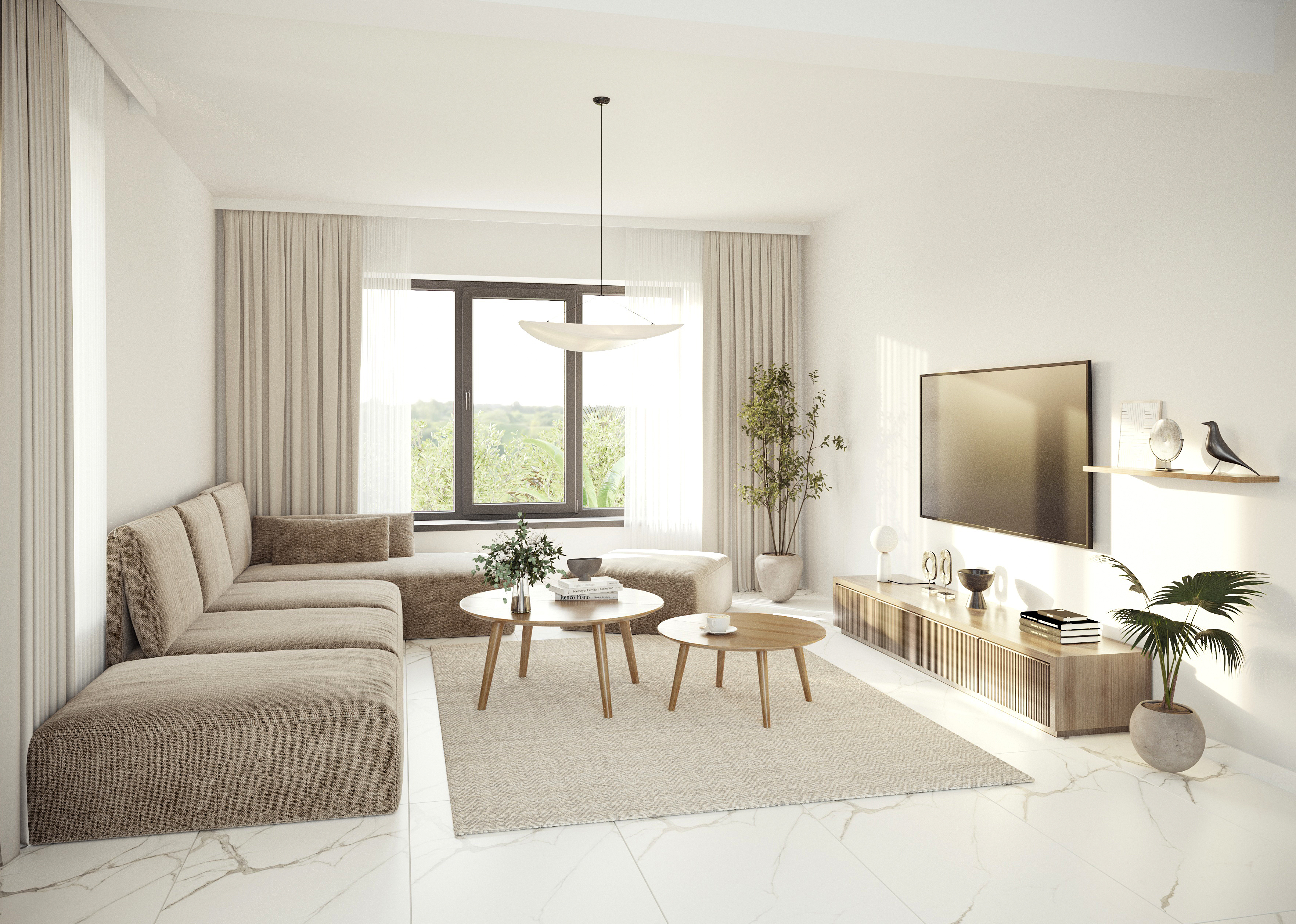 This project reflects a calm and balanced interior approach, combining minimalism with a subtle sense of elegance. The design works with the developer-provided finishes, integrating them cohesively into the overall concept. Existing marble flooring becomes a defining element, adding refinement and contrast to the warm, natural palette.